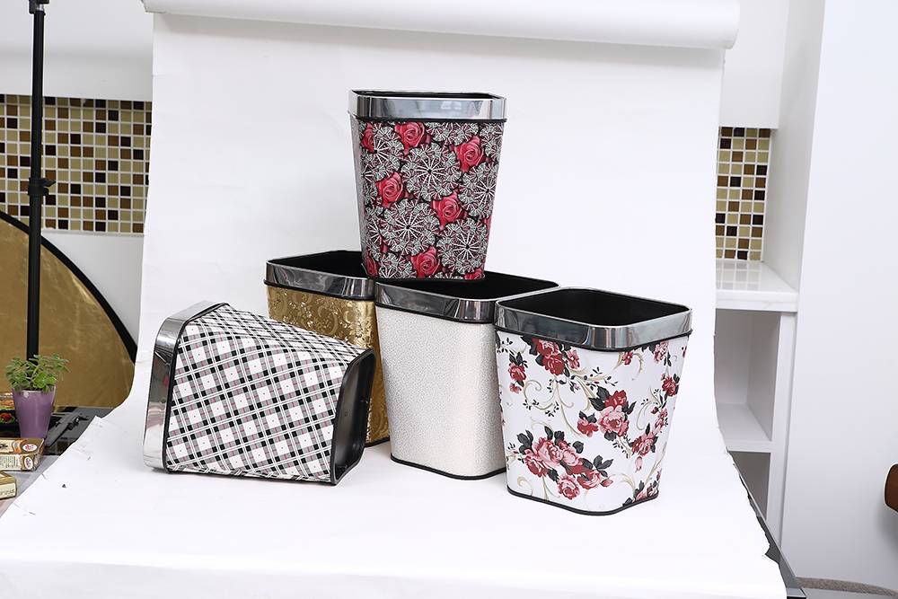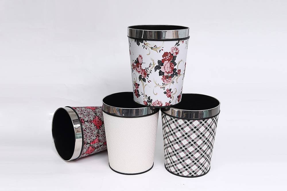 • 皮革無蓋圓形垃圾桶